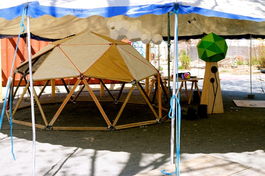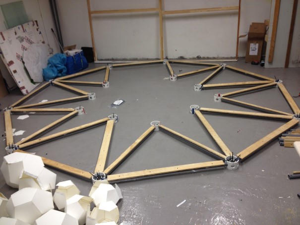 Preliminary Dome struts as a test with 1/4" plywood panels for Art Fair in Berlin, Germany.